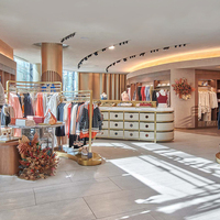 Expositor de Roupas em MDF de Madeira RA54 Direto da Fábrica, Armário de Exibição para Boutique de Roupas Femininas, Design de Layout de Loja